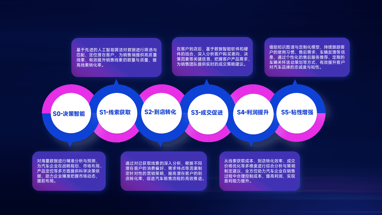 通过拓宽潜在客户来源、、优化线索分配并提高到店转化率,,以增强销售效率。。。。同时,,,,利用线索数据不断优化分析模型,,,有效提升转化率,,,,扩大营销影响力。。